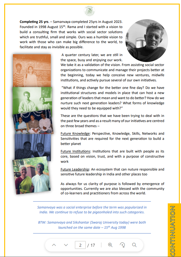 17 pages to capture all the efforts and initiatives of a very active year that was at Samanvaya 2023.